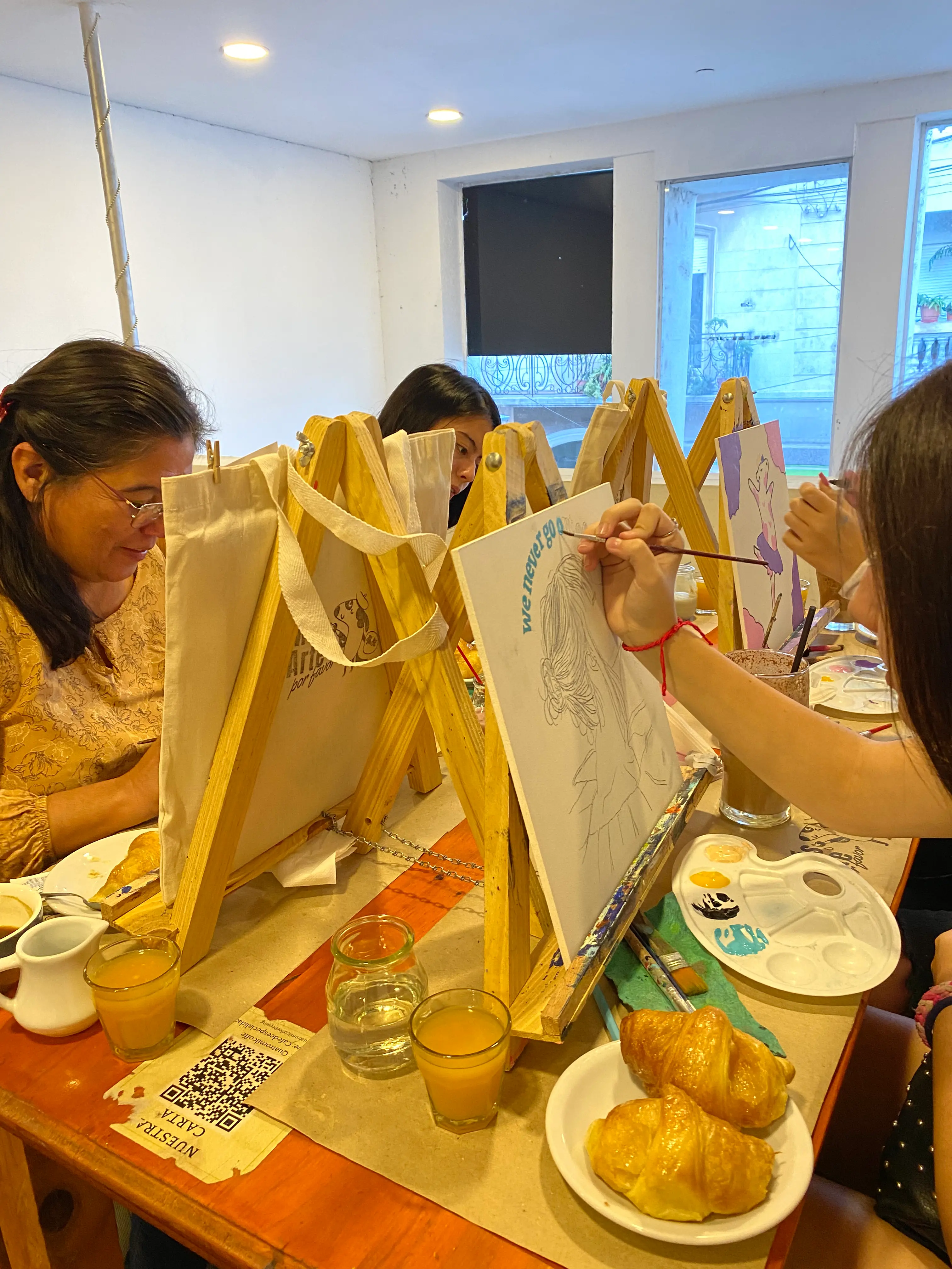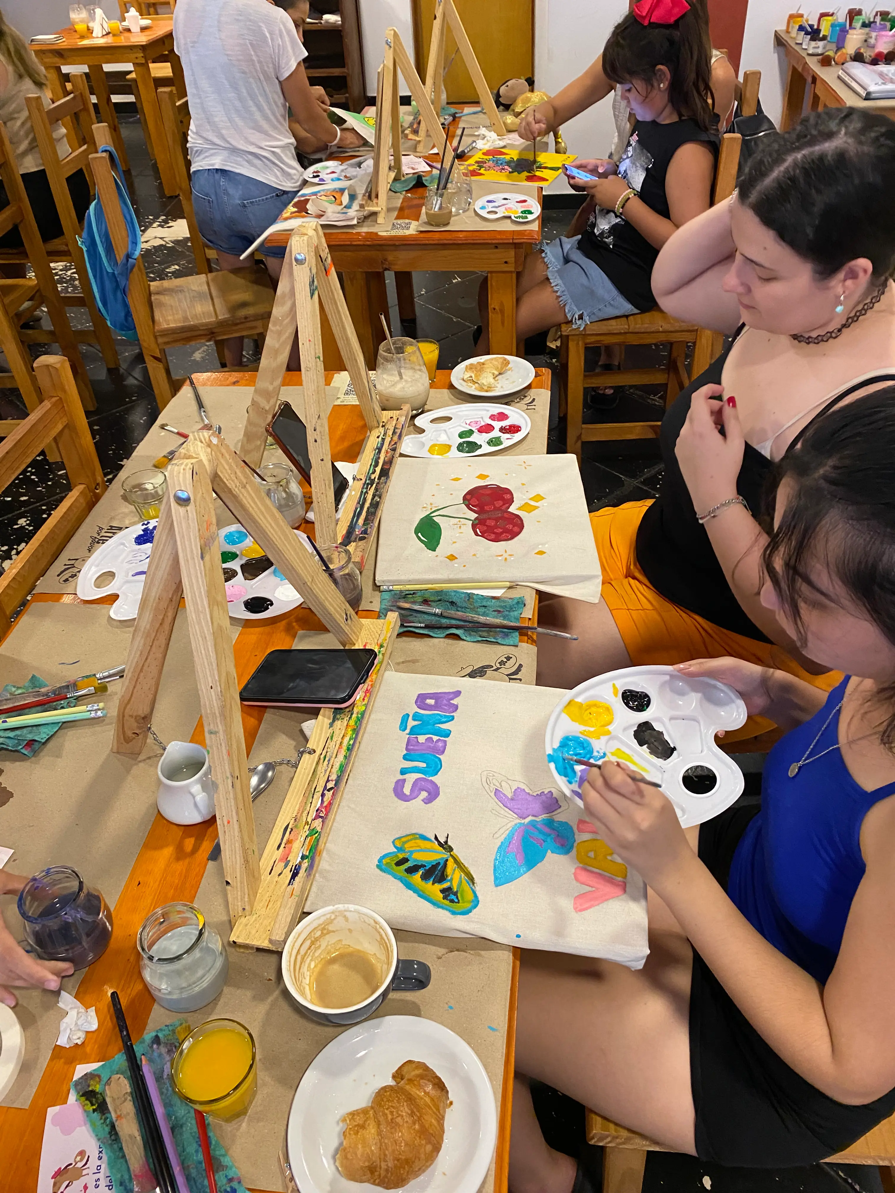 Todo lo que necesitás: pinturas, pinceles, soportes (cuadros, cerámica ¡y más!) están incluidos en la experiencia.