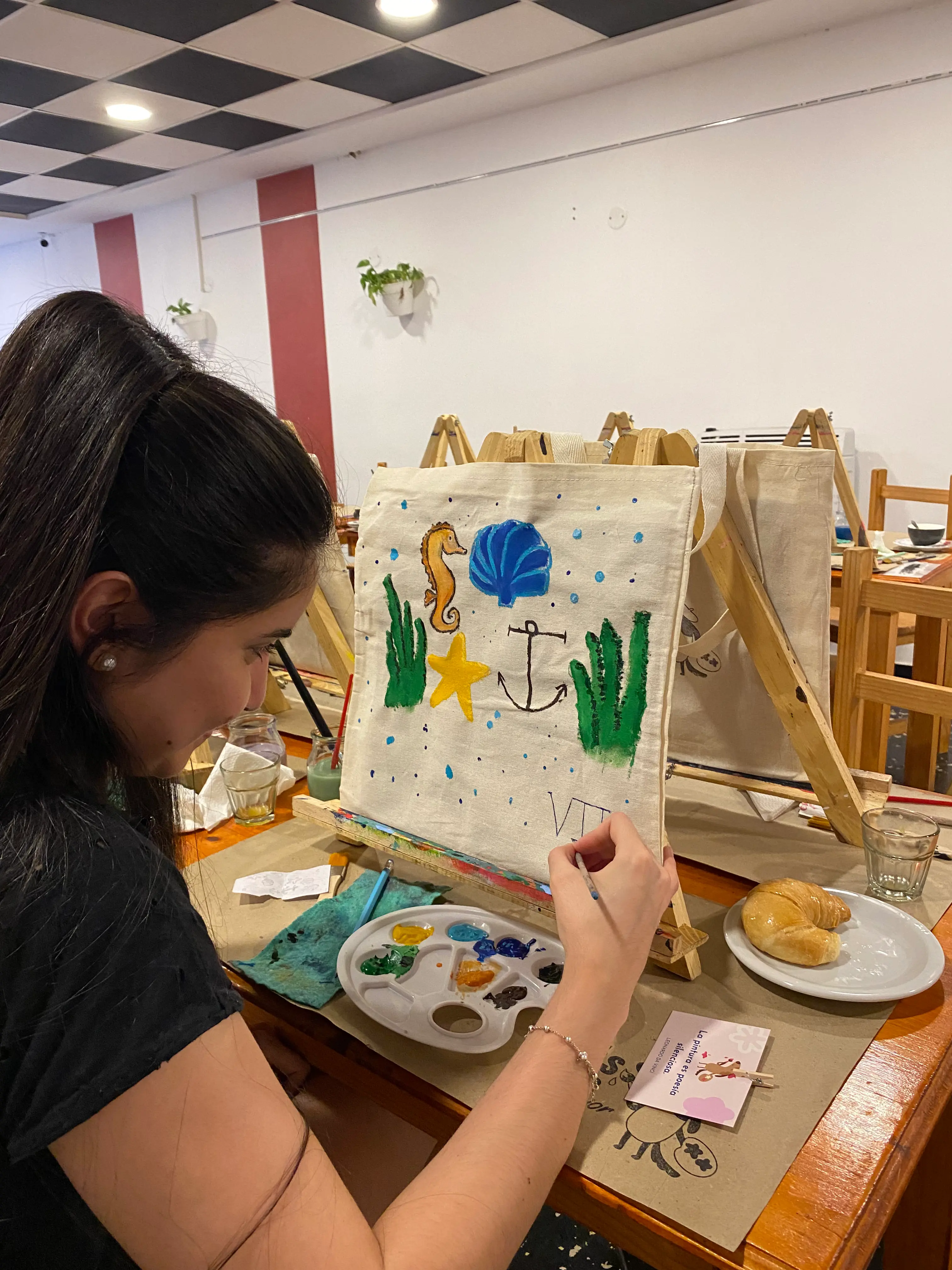 •Actividades libres todos los días dentro de nuestros horarios. Elegí pintar una pieza cerámica, tote bag o lienzo.